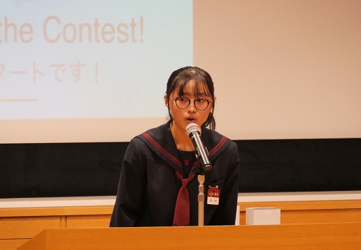 昨年に続いて Kun-ei Kids の参加者2人に小学生の英語によるスピーチを行ってもらいました。そのすばらしさに司会の高校生、参加した中学生も驚き、審査委員の講評でも“Wonderful“が連発されていました。