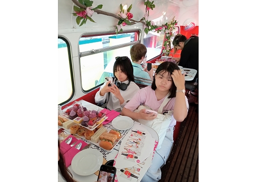 そして、アフタヌーンティーバスツアーに参加しました。お昼は軽めにおにぎりと唐揚げを頼みましたが、このお弁当にテンションが上がったようです。まだ、数日しか経っていませんが、もう日本食が恋しくなっているようです。うれしさのあまり、手が滑って唐揚げを床に落としてしまいscream!