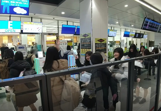今回は11時の集合で余裕があり、全員が集合時間前に集まりました。ただ、空港は利用する人が多く、手続きには時間がかかりました。